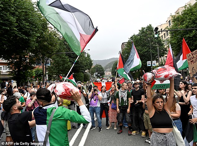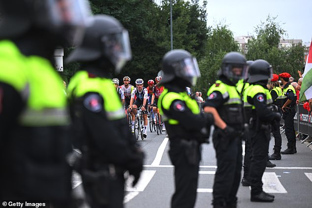 Madrid-born rider Carlos Verona said of the events: ‘The UCI must make decisions for the benefit of everyone. I understand peaceful protests, but I don’t understand them interrupting our work. Perhaps Israel should compete without a flag.’